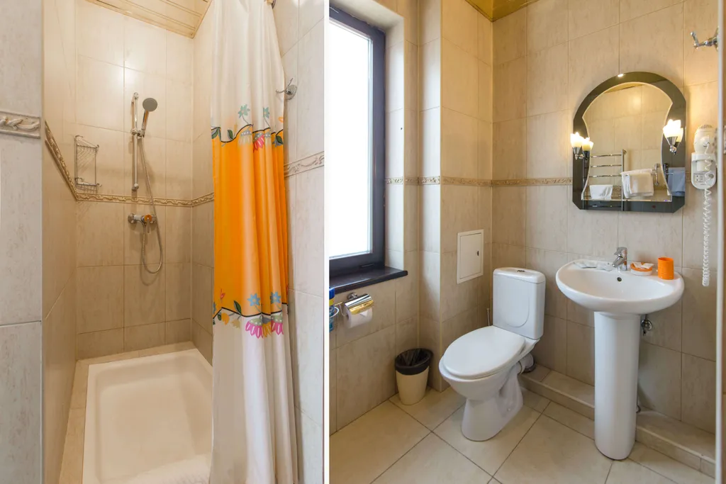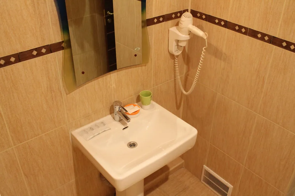 Санузел – умывальник, зеркало, унитаз, душ, фен, средства личной гигиены, набор полотенец.