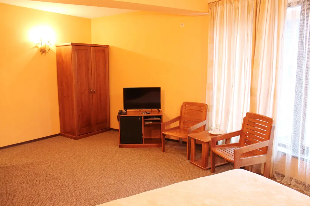 Оборудование – телевизор, фригобар, сейф, теплый пол.