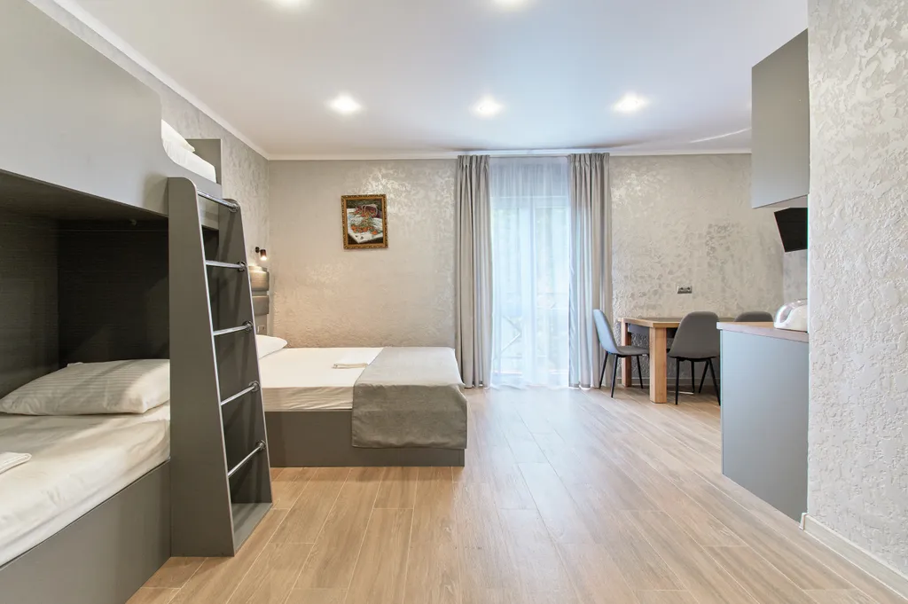 Четырёхместный номер номер с двухуровневой кроватью, кухней и французским балконом в Эсто-Садке - аренда жилья по лучшей цене!