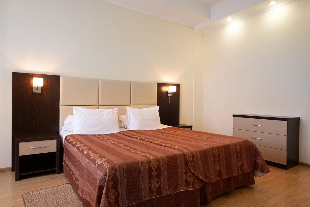 Двухкомнатный номер, в котором диванная зона, расположена в проходной комнате, а просторная спальня является изолированной. Так же, как и во всех номерах, кровать может быть king-size или в виде двух раздельных спальных мест. Номера этой категории, расположенные выше первого этажа, имеют балкон, где Вы сможете любоваться бесконечными красотами Кавказских гор и вдыхать свежий горный воздух. Номер подходит для тех, кто любит комфортный отдых. В оснащении номера входит мини-холодильник, сейф, система кондиционирования, ТВ ЖК, чайник и чайные принадлежности, косметические принадлежности индивидуального пользования, фен, халаты и тапочки.