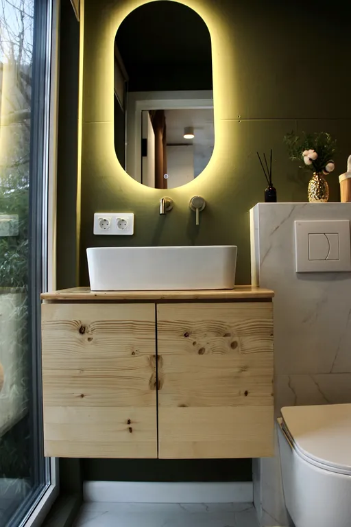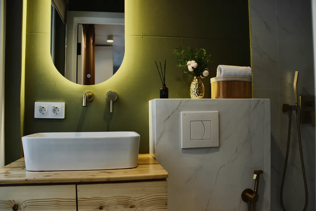 - Зеркало с теплой подсветкой